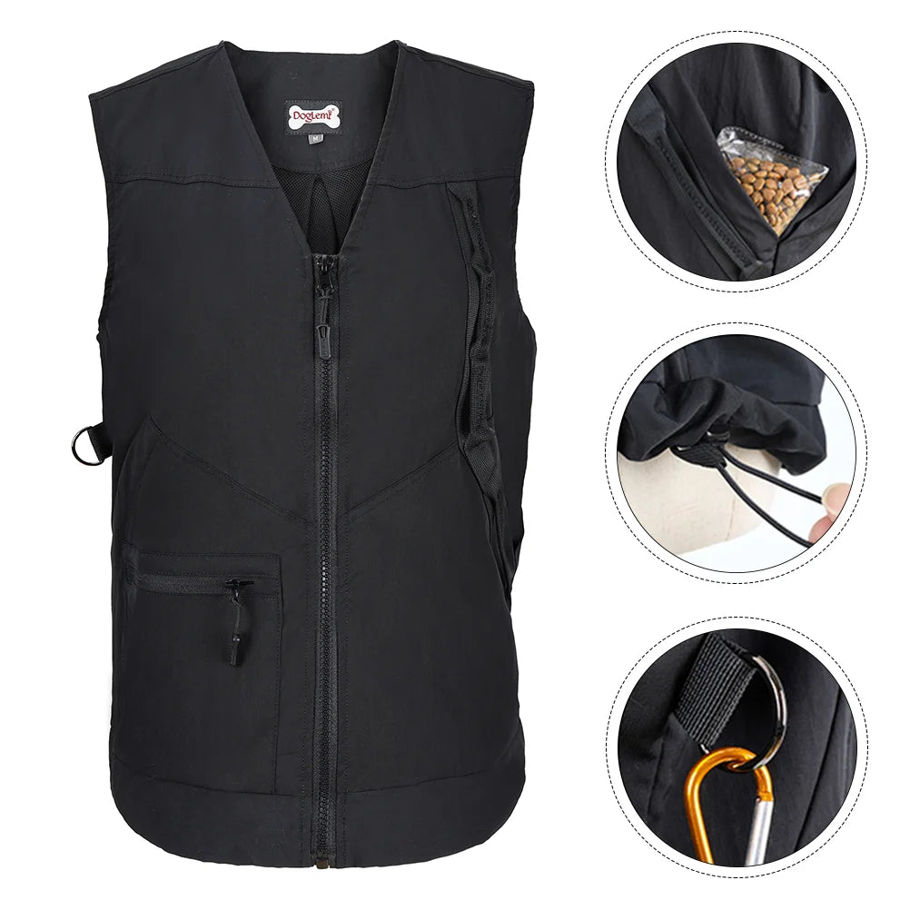 - Dog Handler Training Vest: Made from water-, breathable and durable fabric, super lightweight.|- Pet Trainer Vest: The lining of the vest is made of a comfortable mesh fabric that transfers moisture|- Zipper Vest Sleeveless Jacket: The pet trainer vest has 2 frontal pockets with a large space for dog toys etc.|- Durable Fishing Vest: The vest has a close- fitting waist, which is adjustable.|- Pet Trainers Jacket: The front of the vest has 2 zipper pockets with plenty of space for important items.